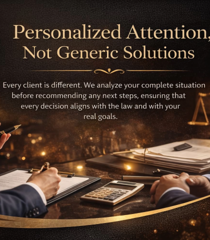 Every client is different. We analyze your complete situation before recommending any next steps, ensuring that every decision aligns with the law and with your real goals—whether services are provided in person or fully virtual