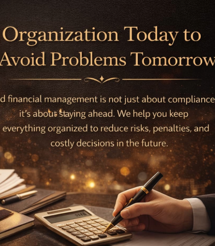Good financial management is not just about compliance—it’s about staying ahead. We help you keep everything organized to reduce risks, penalties, and costly decisions in the future, with secure virtual options available